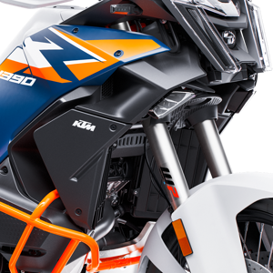 Thanks to new, more efficient radiator fans with wings, cooling is dramatically improved on this latest generation KTM 1390 SUPER ADVENTURE range. A new, more robust valve seat material and new alloy materials help increase thermal conductivity, while lateral air outlets guide hot air away from the rider's knees.