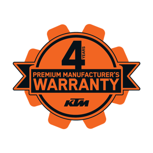 This motorcycle comes with a PREMIUM MANUFACTURER'S WARRANTY. Riders enjoy up to 4 years of coverage; ride worry-free and experience the thrill of KTM with added peace of mind. To keep the warranty valid, regular services must be performed according to the service plan at an authorized KTM dealer. More information and details on how to benefit from this offer can be found on the KTM warranty page.