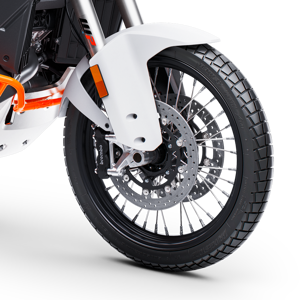 The real adventure begins when you pull out the gate. With a variety of Ride Modes and Engine Map selections, you can confidently handle any condition. Once activated, the ride-by-wire system adjusts the throttle response and peak power output to suit various conditions. The standard ride modes include RAIN, STREET, SPORT, OFFROAD, and CUSTOM. With the optional RALLY mode, you can conquer any terrain confidently. For more information, visit our KTM Tech Guide.