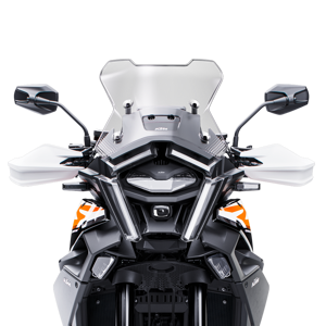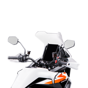 A new adjustable windshield finds its way onto the KTM 1390 SUPER ADVENTURE S, allowing for up to 70 mm of adjustment. Designed in a wind tunnel, this new windshield is quieter, offers more wind protection, and is ready to take on the longest of journeys.