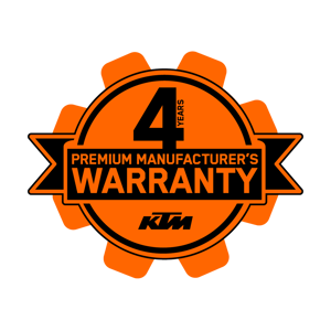 This motorcycle comes with a PREMIUM MANUFACTURER'S WARRANTY. Riders enjoy up to 4 years of coverage; ride worry-free and experience the thrill of KTM with added peace of mind. To keep the warranty valid, regular services must be performed according to the service plan at an authorized KTM dealer. More information and details on how to benefit from this offer can be found on the KTM warranty page.