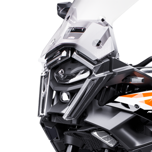 Turning night to day, an all-new LED headlight unit takes center position on the KTM 1390 SUPER ADVENTURE range. Not only does this provide the KTM 1390 SUPER ADVENTURE with a fresh signature stare, but it also illuminates the road ahead with new cornering lights lighting up the bends with a broader illumination.