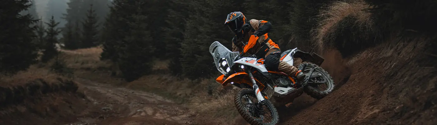 When the tar road ends and the dirt track begins, KTM 390 ADVENTURE R riders can switch to OFFROAD MODE. This allows a certain rear-wheel slip, meaning muddy puddles or thick sand is easily navigated. In OFFROAD MODE, OFFROAD ABS is also activated, meaning you can pull your best impressions by locking up the rear wheel to slide into corners. OFFROAD MODE also maintains its settings if you stall the engine or switch off your machine, meaning you're ready to go as soon as the engine fires up.