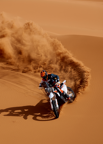 The powerplant responsible for 10 Dakar victories is based on the hugely successful KTM SOHC 450 cc 4-stroke engine. Engineered with long, hard, and fast rally stages in mind, it features more efficient performance throughout the rev range. For 2026, it is fitted with a SOHC cylinder head, with a reinforced clutch and gearbox, and the latest electronic fuel injection. The result is unrivaled power, speed, and outstanding reliability.