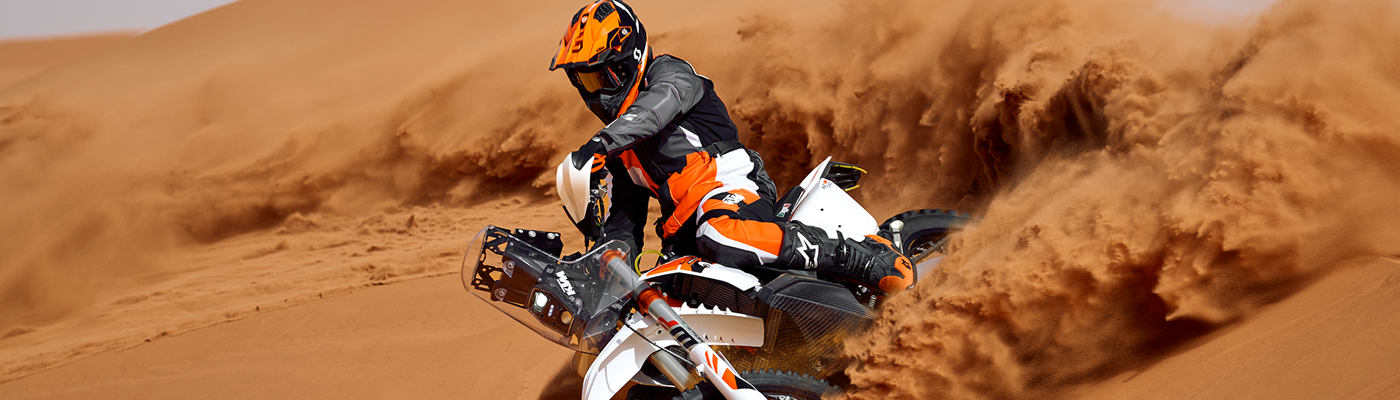 The powerplant responsible for 10 Dakar victories is based on the hugely successful KTM SOHC 450 cc 4-stroke engine. Engineered with long, hard, and fast rally stages in mind, it features more efficient performance throughout the rev range. For 2026, it is fitted with a SOHC cylinder head, with a reinforced clutch and gearbox, and the latest electronic fuel injection. The result is unrivaled power, speed, and outstanding reliability.