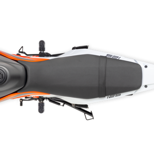 Taking inspiration from the KTM EXC range but with added comfort for longer commutes or trips, the KTM 125 ENDURO R has a single-piece flat seat design for easy on-board mobility and when standing on the pegs.