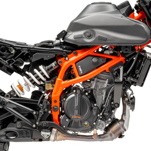 A gravity die-cast swingarm has been specifically developed for the KTM 125 ENDURO R and provides a sturdy and durable platform for the rear suspension system. Featuring a direct shock absorber mount offset to the side, it creates additional space for the unique exhaust system.
