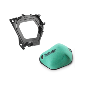 The air filter box is designed to ensure maximum airflow with minimal water intrusion. Precision in how the inlet ducts are positioned is aimed at preventing air deformation and maintaining filter protection. An enduro-specific splash protector under the airbox prevents water or dirt from splashing up from the rear wheel, while the Twin Air filter and air filter support design features a simple fail-proof mounting system for safe and accurate filter installation. All this ensures the air filter is easily accessed, without tools, for fast track-side maintenance.