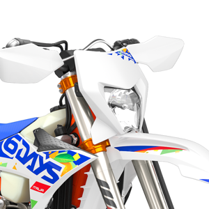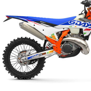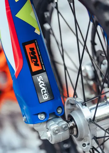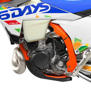 The first KTM bearing the 6DAYS name tore onto the scene way back in 1996. Almost 30 years later, we're still keeping that legacy alive. All KTM 6DAYS models receive the full 6DAYS treatment, from machined orange anodized triple clamps, right down to a solid rear brake disc. Each and every element on a 6DAYS model is specifically chosen for the job at hand, stamped with a coveted 6DAYS logo, and let loose to dominate the field.