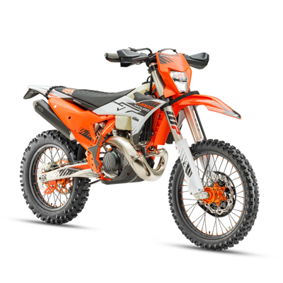 Specifically engineered for longitudinal rigidity, the KTM 300 EXC HARDENDURO is engineered around a gloss-orange powder-coated frame providing exceptional rider feedback, energy absorption, and high-speed stability. This is achieved by repositioning the rotating masses in the frame along with a forged steering head connection. The footrest mounts also feature a slim design for less risk of hooking up. And when the ride comes to an end, a forged one-piece side stand ensures your enduro weapon stands proud.