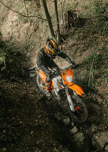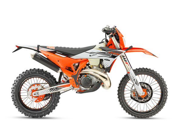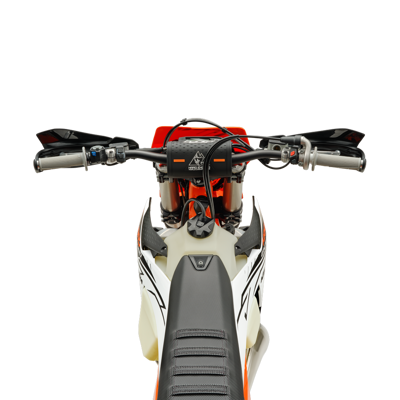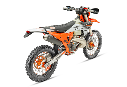 The KTM EXC range features a rider-focussed body-position triangle, providing improved knee contact - especially when standing on the pegs - with improved gripping surfaces all around. With the plastics working to expel mud buildup in wet, muddy conditions, a flat seat profile with a high grip seat cover providing exceptional rider movement and control, and a polyamide-reinforced aluminum subframe providing unmatched rider feel and feedback, your only concern is navigating the terrain ahead of you.