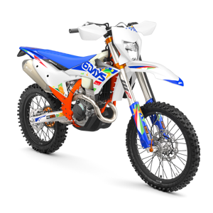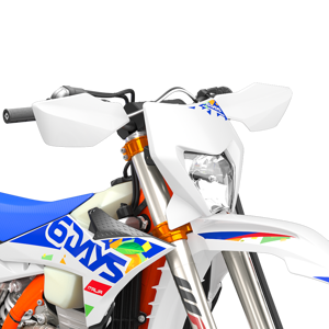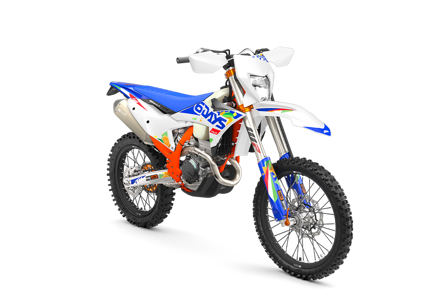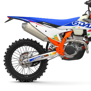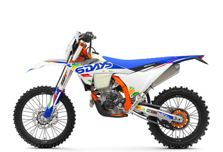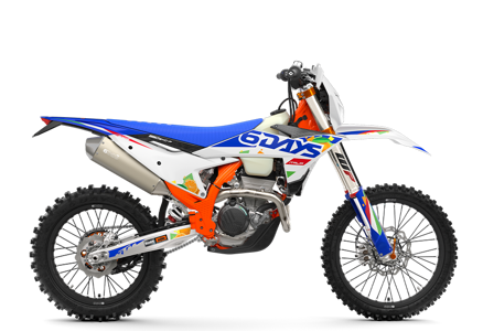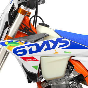 The first KTM bearing the 6DAYS name tore onto the scene way back in 1996. Almost 30 years later, we're still keeping that legacy alive. All KTM 6DAYS models receive the full 6DAYS treatment, from machined orange anodized triple clamps, right down to a solid rear brake disc. Each and every element on a 6DAYS model is specifically chosen for the job at hand, stamped with a coveted 6DAYS logo, and let loose to dominate the field.