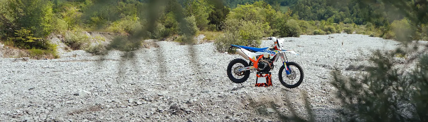 The first KTM bearing the 6DAYS name tore onto the scene way back in 1996. Almost 30 years later, we're still keeping that legacy alive. All KTM 6DAYS models receive the full 6DAYS treatment, from machined orange anodized triple clamps, right down to a solid rear brake disc. Each and every element on a 6DAYS model is specifically chosen for the job at hand, stamped with a coveted 6DAYS logo, and let loose to dominate the field.