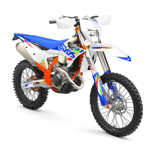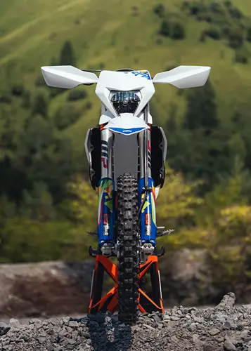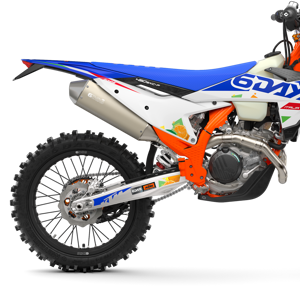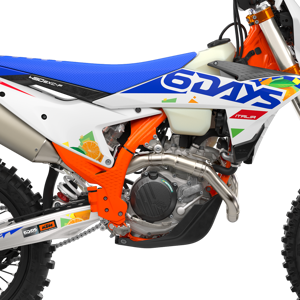 The first KTM bearing the 6DAYS name tore onto the scene way back in 1996. Almost 30 years later, we're still keeping that legacy alive. All KTM 6DAYS models receive the full 6DAYS treatment, from machined orange anodized triple clamps, right down to a solid rear brake disc. Each and every element on a 6DAYS model is specifically chosen for the job at hand, stamped with a coveted 6DAYS logo, and let loose to dominate the field.