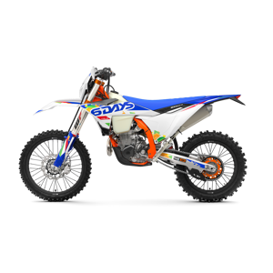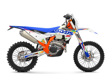 The first KTM bearing the 6DAYS name tore onto the scene way back in 1996. Almost 30 years later, we're still keeping that legacy alive. All KTM 6DAYS models receive the full 6DAYS treatment, from machined orange anodized triple clamps, right down to a solid rear brake disc. Each and every element on a 6DAYS model is specifically chosen for the job at hand, stamped with a coveted 6DAYS logo, and let loose to dominate the field.