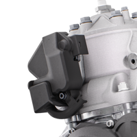 Pre-mix gets a remix across the 2-stroke KTM SX range, with Electronic Fuel Injection setting the standard. Now there's no more fiddly jetting setup pre-race, And thanks to the Keihin EFI and reed valve case design, you can be guaranteed of laying down optimal power at any altitude, all of the time. For 2026 there is a new fuel protector cap: you'll still have quick and easy access for maintenance but now more safety against any outside damage and accidental opening as well as preventing dirt from entering the sides of the connector.