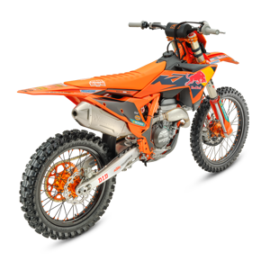 The 2026 KTM 250 SX-F FACTORY EDITION features bold new colors directly inspired by the Red Bull KTM Factory Racing team. A deeper, more vibrant KTM orange is paired with striking blue accents and a Selle Dalla Valle seat combo -- designed to stand out at speed and on the gate. All graphics are ultra-durable thanks to in-mold technology, ensuring the bike looks sharp lap after lap.