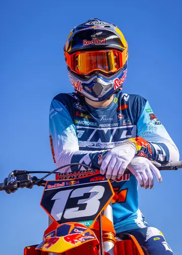 Getting power hooked into the dirt is a tough job. However, hours of research and testing have led the 2026 KTM Motocross range to the Dunlop GEOMAX MX34. Providing unmatched stability and control at the highest level, the rubber features a rigid carcass and rubber compound that improves damping and absorption, maintaining performance up to 30% longer than previous models. Progressive Cornering Block Technology also improves grip in the berms, while the rear pattern has a tall and wide center block for desirable traction and control everywhere else. Lastly, this unique block arrangement works to dispel mud buildup, ensuring traction in even the muddiest of track conditions.