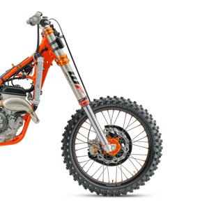 The 2026 KTM SX and SX-F range has an WP XACT AER PRO 7548 fork and WP XACT PRO 8950 rear shock. This means you'll be lining up at the setting gate with the ultimate set-up, reduced weight, pristine weight distribution and acute responsiveness.