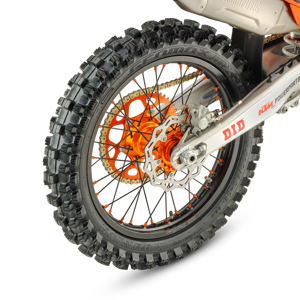 - Factory wheel set (black D.I.D DirtStar rim, black spokes, orange and nipples)