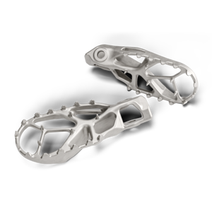 No one enjoys a bad hook-up. Good thing then that the shock absorber geometry on the KTM SX and SX-F machines gives decent ground clearance for the linkage, with the topology-optimized die-cast footpegs being less susceptible to hooking on deep ruts, and take-offs when scrubbing.