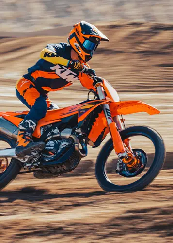 The KTM SX and SX-F range is engineered and designed to provide riders with easy-to-access service parts, as well as suspension adjustability. This permits faster trackside and off-season maintenance, as well as simplifying motocross for novice riders without pit crews.