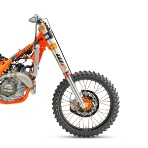 The 2026 KTM SX and SX-F range has an WP XACT AER PRO 7548 fork and WP XACT PRO 8950 rear shock. This means you'll be lining up at the setting gate with the ultimate set-up, reduced weight, pristine weight distribution and acute responsiveness.