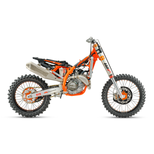 When the gate drops you need to be the first to off the line in a bid to rule (and make) the roost. The KTM 2026 450 SX-F FACTORY EDITION boasts one of the strongest and most versatile 4-stroke powerplants in the paddock, with its SOHC engine proving to be the perfect example of advanced engineering. With a peak power output, and an overall engine weight of only 26.8 kg, you'll leave the competition with more than a little mud on the face. The Akrapovič silencer fitted to the 2026 KTM 450 SX-F FACTORY EDITION has been updated to meet the current FIM noise limit of 109 dB(A). Crafted from lightweight titanium, it features a premium finish that reflects its high-performance design -- and is available exclusively on this limited-run model.