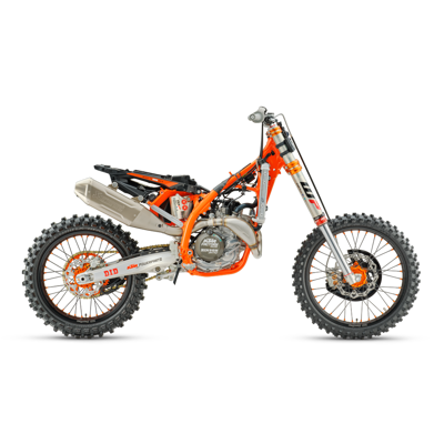 The 2026 KTM 450 SX-F FACTORY EDITION features bold new colors directly inspired by the Red Bull KTM Factory Racing team. A deeper, more vibrant KTM orange is paired with striking blue accents and a Selle Dalla Valle seat combo -- designed to stand out at speed and on the gate. All graphics are ultra-durable thanks to in-mold technology, ensuring the bike looks sharp lap after lap.