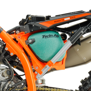 Made to provide maximum airflow, the air filter box is designed with positioned inlet ducts aimed at preventing air deformation and maintaining filter protection. The Twin Air filter and air filter design involve a simple fail-proof mounting system for safe and accurate tool-less installation. Quickly removing the left side panel allows for easy track-side maintenance. A vented air filter box cover is also included for all SX and SX-F models in the buy-pack.