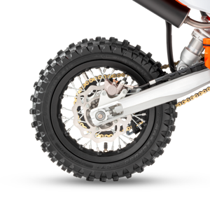 Rolling off the race rig and into the pit lane, the KTM 50 SX uses lightweight, black anodized, aluminum rims just like the full-size KTM SX range. These provide the highest levels of strength and reliability, while MAXXIS MX-ST tires deliver outstanding performance on any terrain, along with exceptional straight-line stability.