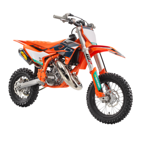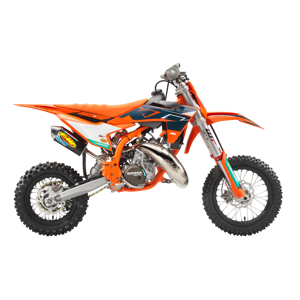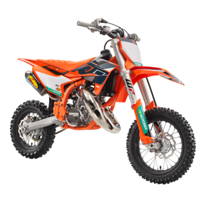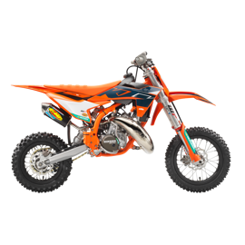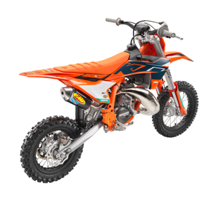 The KTM 50 SX FACTORY EDITION features a modern and compact engine using the latest 2-stroke technology. Using a 3-shaft design, the crankshaft is positioned near the center of gravity, which benefits mass centralization and creates the ideal intake angle into the reed valve for top-level performance. An independent cylinder blank allows for a complete cylinder design, with increased power.
