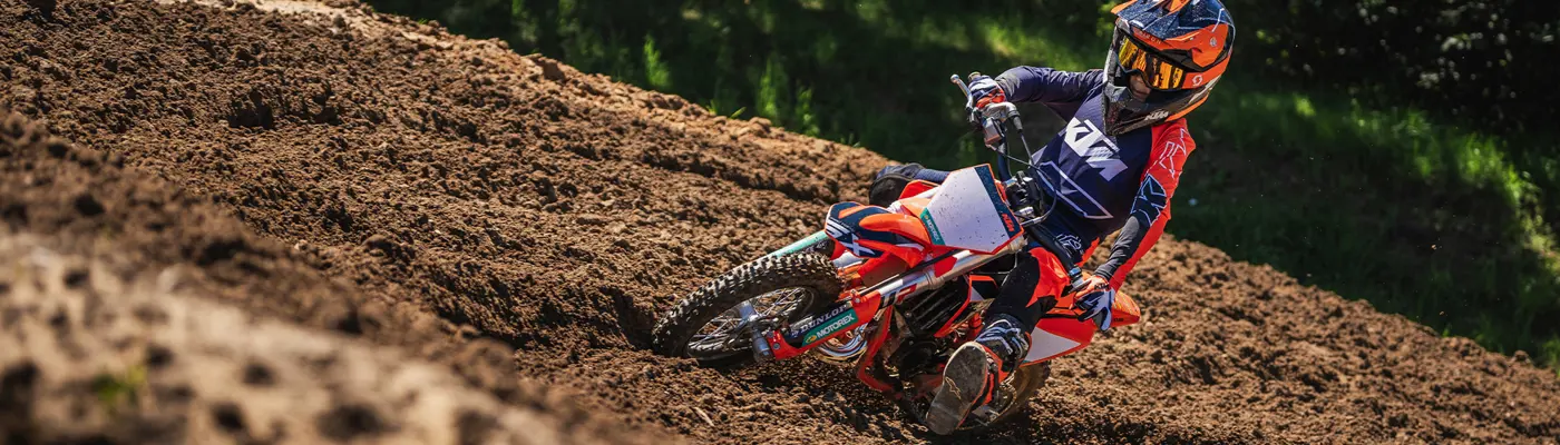 For absolute beginners, the KTM POWERPARTS catalog offers a choice of two power-reduction kits. The first allows for an entry-level, moderate, and controllable power reduction to 4hp, with the second permitting for a more intermediate power kit unleashing 8hp for mid-level riding levels.