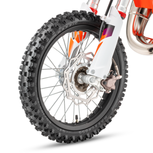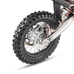Rolling off the race rig and into the pit lane, the KTM 65 SX uses lightweight, black anodized, aluminum rims like the full-size KTM SX range. These provide the highest levels of strength and reliability, while MAXXIS MX-ST tires deliver outstanding performance on any terrain and exceptional straight-line stability.