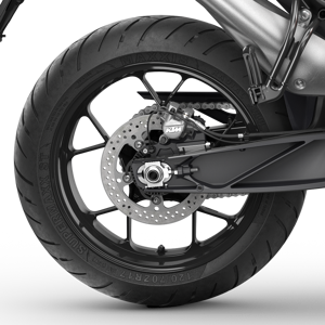 The KTM 790 DUKE is fitted with extremely lightweight, light-alloy wheels manufactured using a low-pressure die-casting process. Not only do the lightweight wheels subtract from the overall weight, but they also minimize the unsprung rotating masses and are wrapped in a set of MAXXIS Supermaxx ST tires.