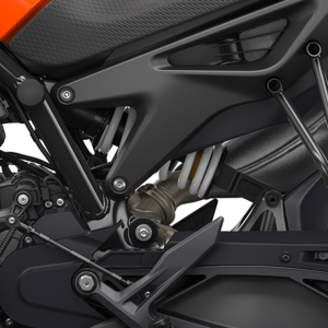 Making sure the rear wheel behaves when the going gets fast, is a high-quality gas-assisted WP APEX rear shock, featuring progressive spring and preload adjustment. This means the KTM 790 DUKE maintains a sporty ride quality, while still being comfortable enough for longer trips.
