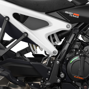 An all-new 5" bonded glass TFT dashboard is upgraded with he latest graphic and information software, making it faster, easier to navigate and designed to give riders faster access to the various features of the bike with far fewer clicks. The TFT also works in conjunction with optional KTMConnect, which connected with your smartphone to the dash to access navigation, audio and calls. A USB-C connection is also available for charging your smart device.