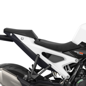 Made from high-strength, lightweight aluminum, the footpegs ensure grip and provide some vibration damping. The pillion hasn't been forgotten either, with emphasis placed on passenger comfort thanks to a more comfortable knee angle.