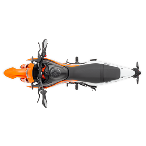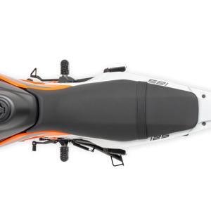 Taking inspiration from the KTM EXC range but with added comfort for longer commutes or trips, the KTM 125 SMC R has a new 860 mm single-piece flat seat design for easy on-board mobility and getting low into an apex.