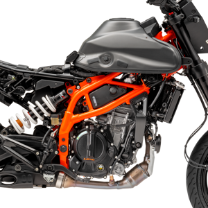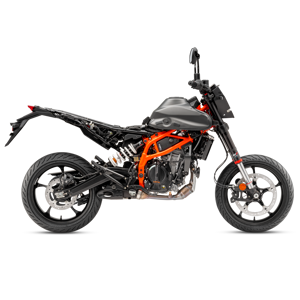 Pulling out all the stops, the KTM 125 SMC R is equipped with a 320 mm radial brake disk and Bybre caliper upfront, with a 240 mm brake disk and single-piston caliper at the rear. These are supported by KTM's proven ABS technology for added safety - but this can also be disabled completely for added "fun".