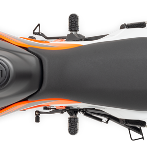 Finding that perfect balance when attacking your favorite stretch of dirt or for added comfort around town is easy, thanks to the KTM 125 SMC R's adjustable footrests - not to mention a complete PowerPart catalog filled with performance and style enhancing add-ons.