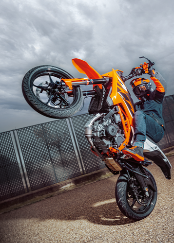 Boasting the latest generation of KTM's LC4c engine, the KTM 125 SMC R features a compact, 124 cc single-cylinder powerplant, churning out impressive power and effortless acceleration. This makes it ideal for charging through motorway traffic, or playing around in the parking lots.
