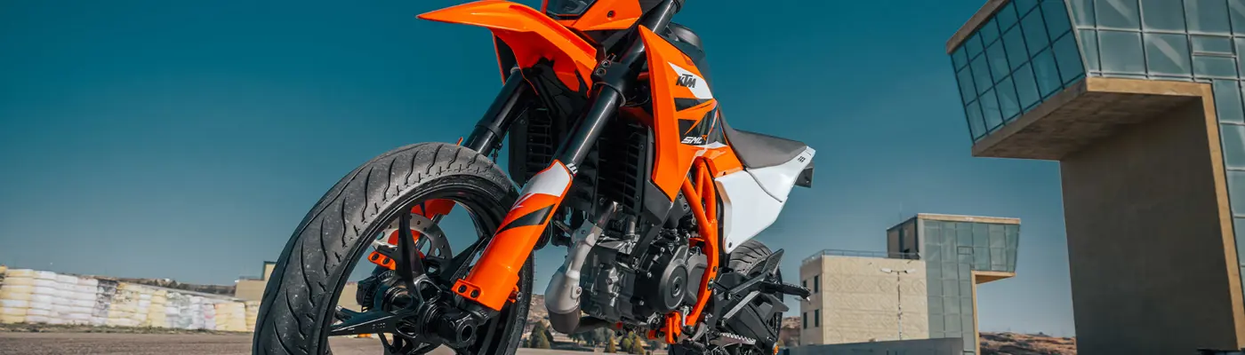 Boasting the latest generation of KTM's LC4c engine, the KTM 125 SMC R features a compact, 124 cc single-cylinder powerplant, churning out impressive power and effortless acceleration. This makes it ideal for charging through motorway traffic, or playing around in the parking lots.