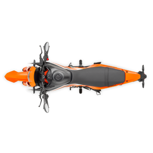 With an ergo-triangle inspired by its bigger brother, the KTM 690 SMC R, the KTM 390 SMC R features an aggressive handlebar shape, upright seating angle, and generous space for easy on-bike mobility.