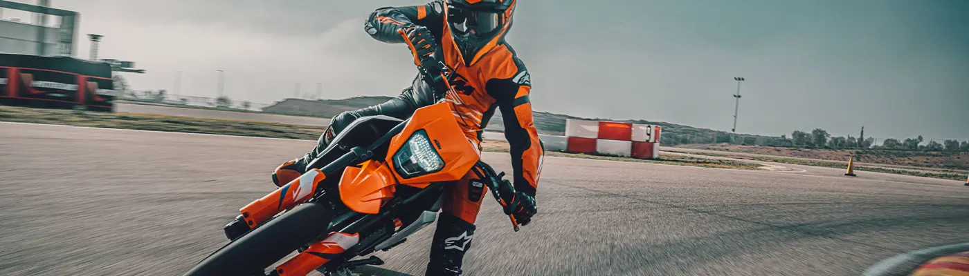 The KTM 390 SMC R comes with premium looks and a striking graphic design as standard. Thanks to top-tier in-mold graphics, it not only looks the part but can also handle anything the outdoors throws at it.